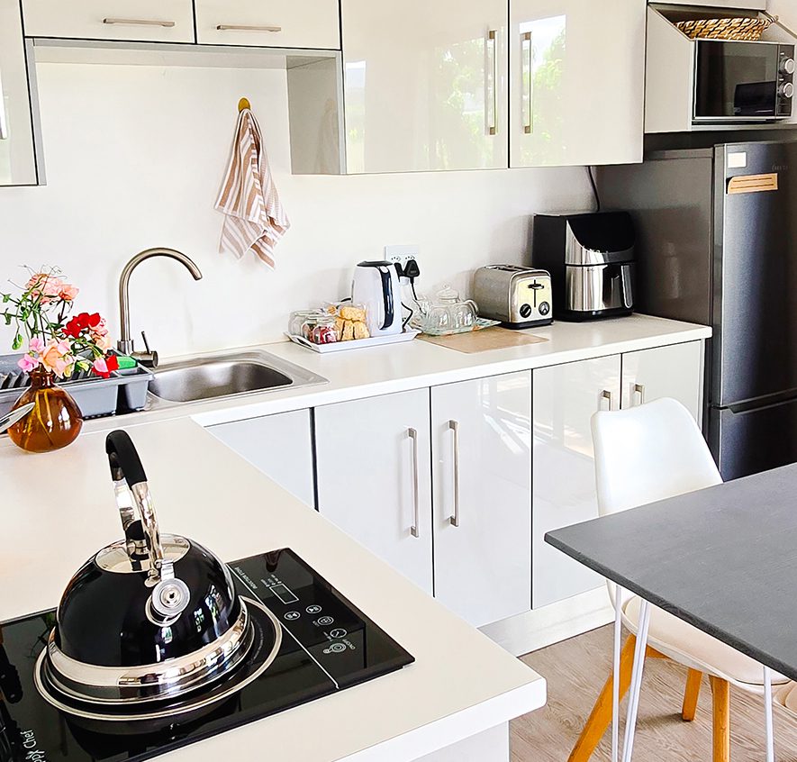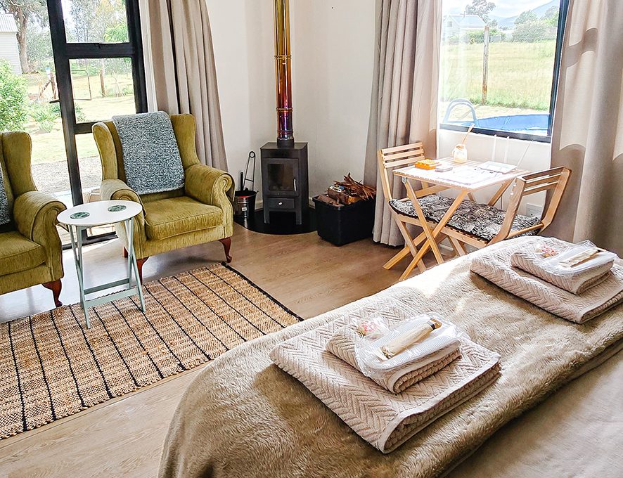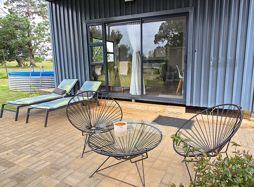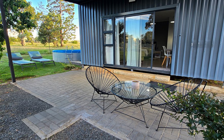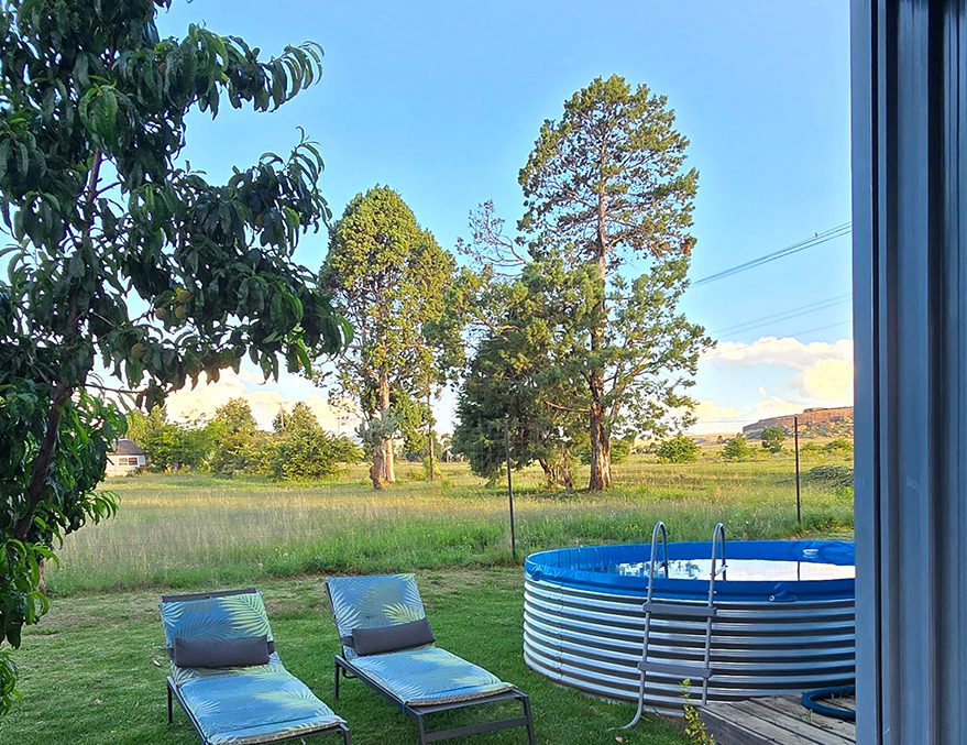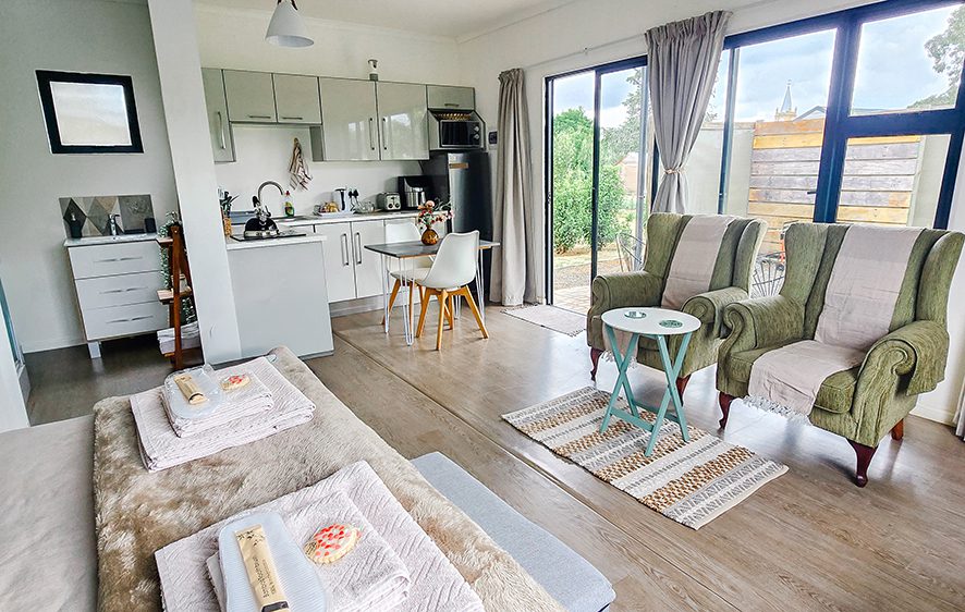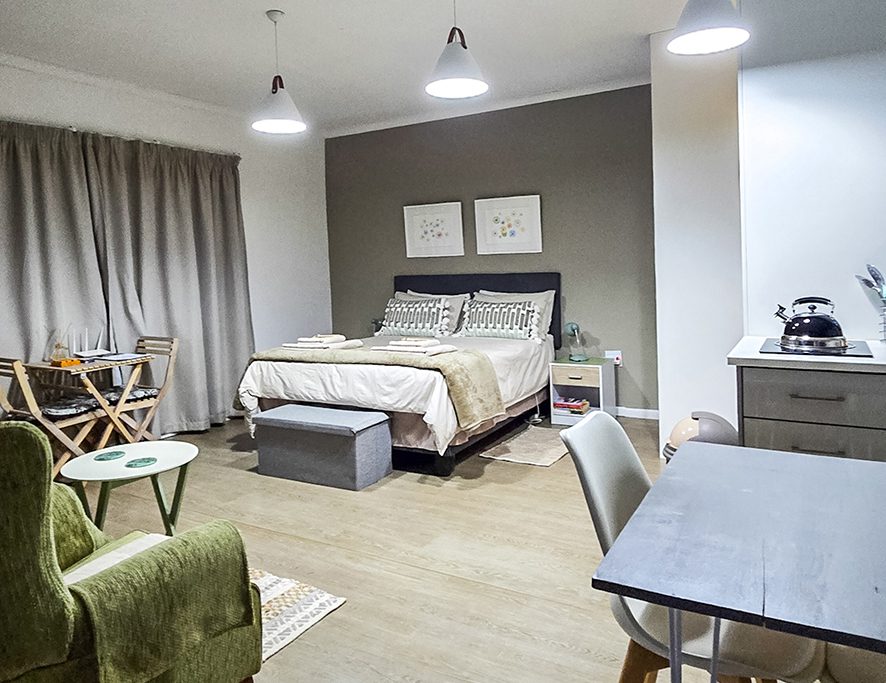 This contemporary cabin is situated on the southern border of town with unlimited views over Kalkoenberg. It is spacious and open plan and elegantly furnished for your comfort. Fully equipped with towels and linen provided.