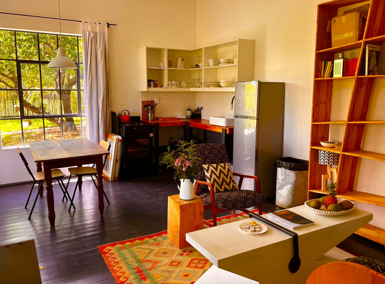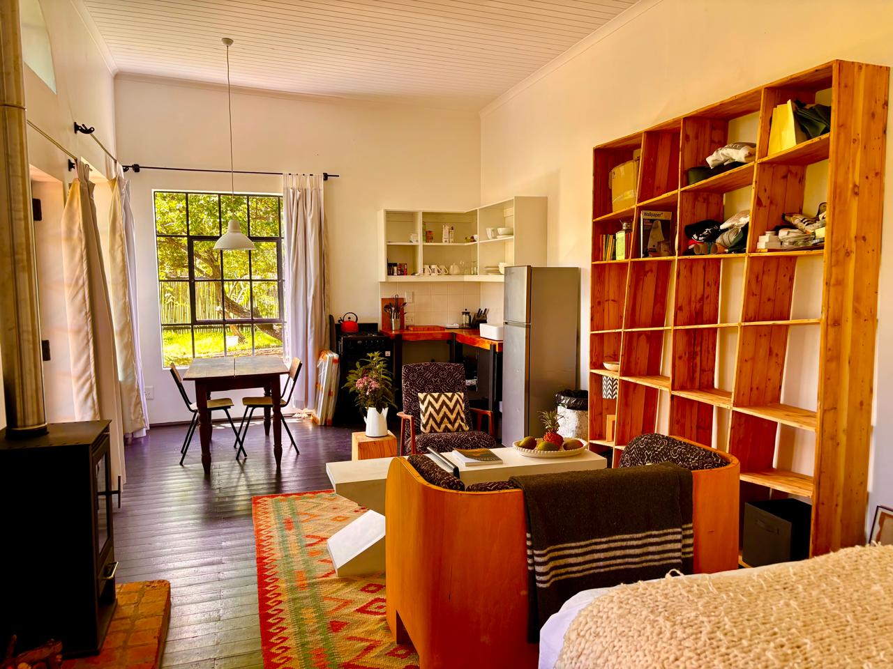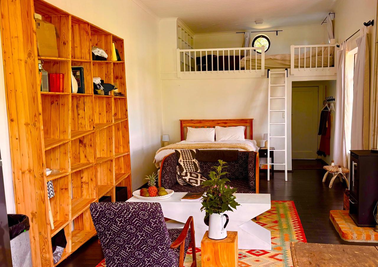 The compact open plan studio design incorporates lounge, dining space and kitchen plus upstairs sleeping loft. Two Queen size beds, can sleep 4. Clawfoot bath tub and outdoor shower. Building is properly insulated to Canadian standards for those chilly Free State winters.